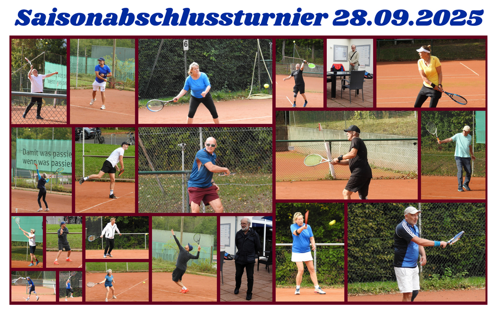 Am 28. September 2025 fand das 21. Saisonabschlussturnier als Doppel-/Mixedturnier statt. In diesem Jahr spielten 17 Teilnehmer mit wechselnden Partnern und Gegnern. So konnte man sich kennen lernen und bei bester Laune und mit abwechslungsreichen Begegnungen noch einmal den Tennisschläger schwingen.