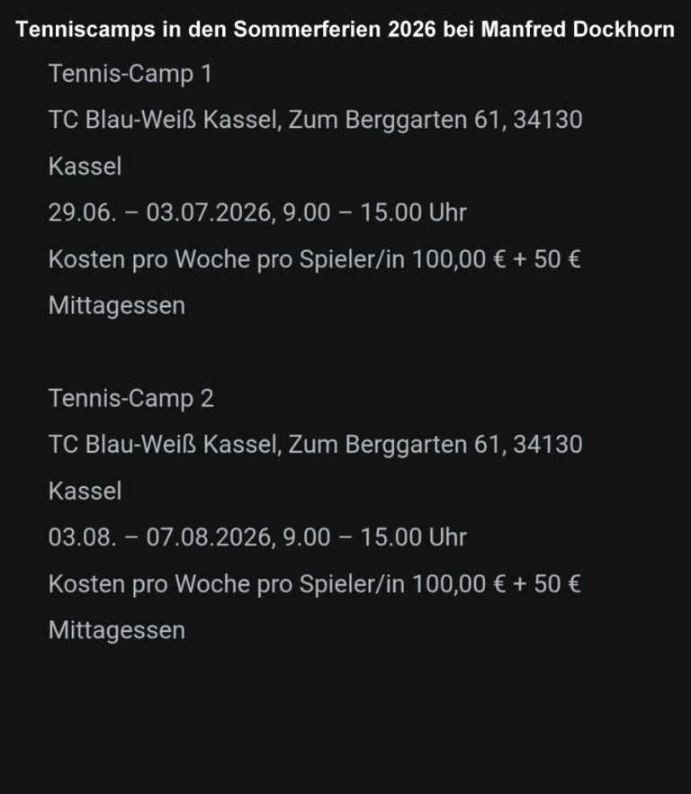 Dockhorns Sommer-Tenniscamps 2026 für Kinder und Jugendliche