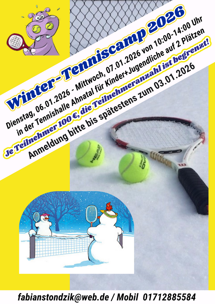 Stondziks Winter-Tenniscamp 2026 – jetzt anmelden! / Allgemein, Clubnews, Offene Turniere Jugendliche, Tenniscamps / Von Marion