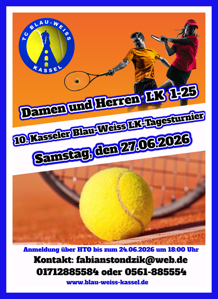 Wenn Ihr Lust auf noch mehr Turniere in der näheren Umgebung habt, könnt Ihr gerne unter folgendem Link den Turnierkalender (Jugend und Erwachsene) vom Tennisbezirk Nordhessen einsehen: http://www.tennis-nordhessen.de/index.php/turnierkalender